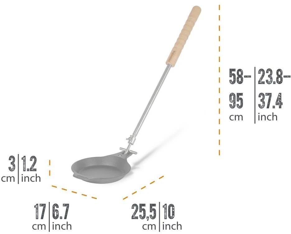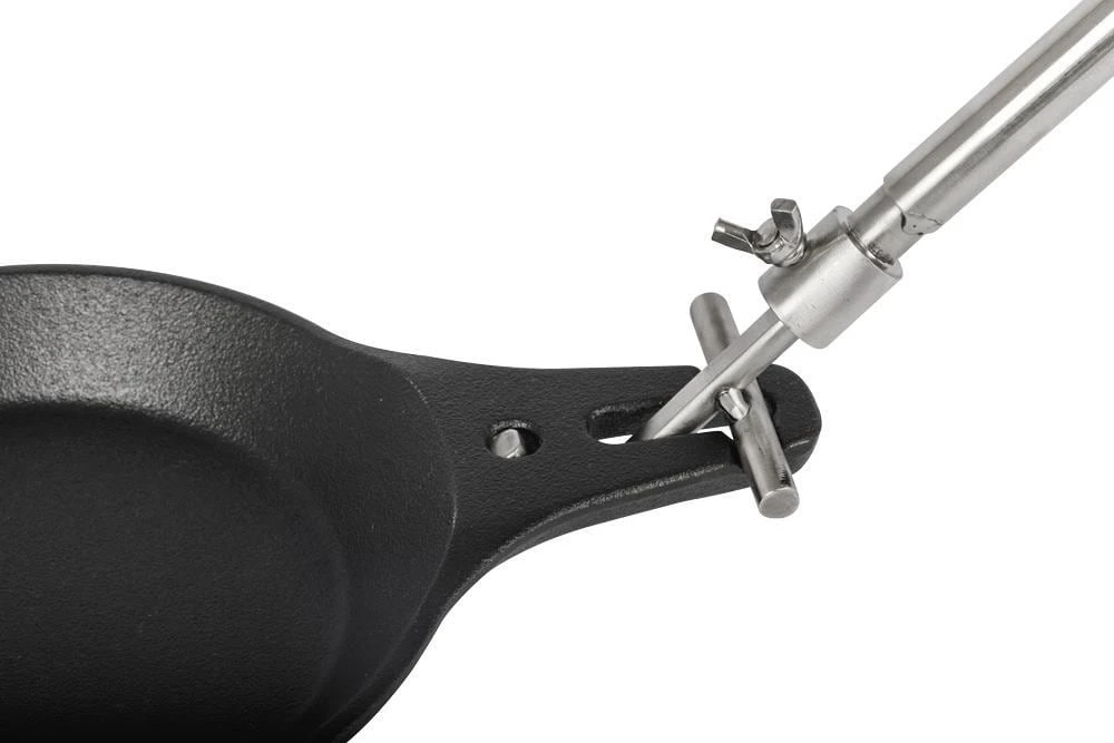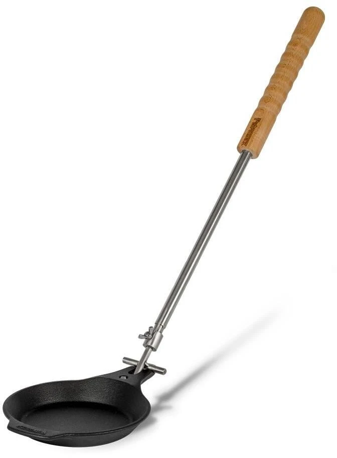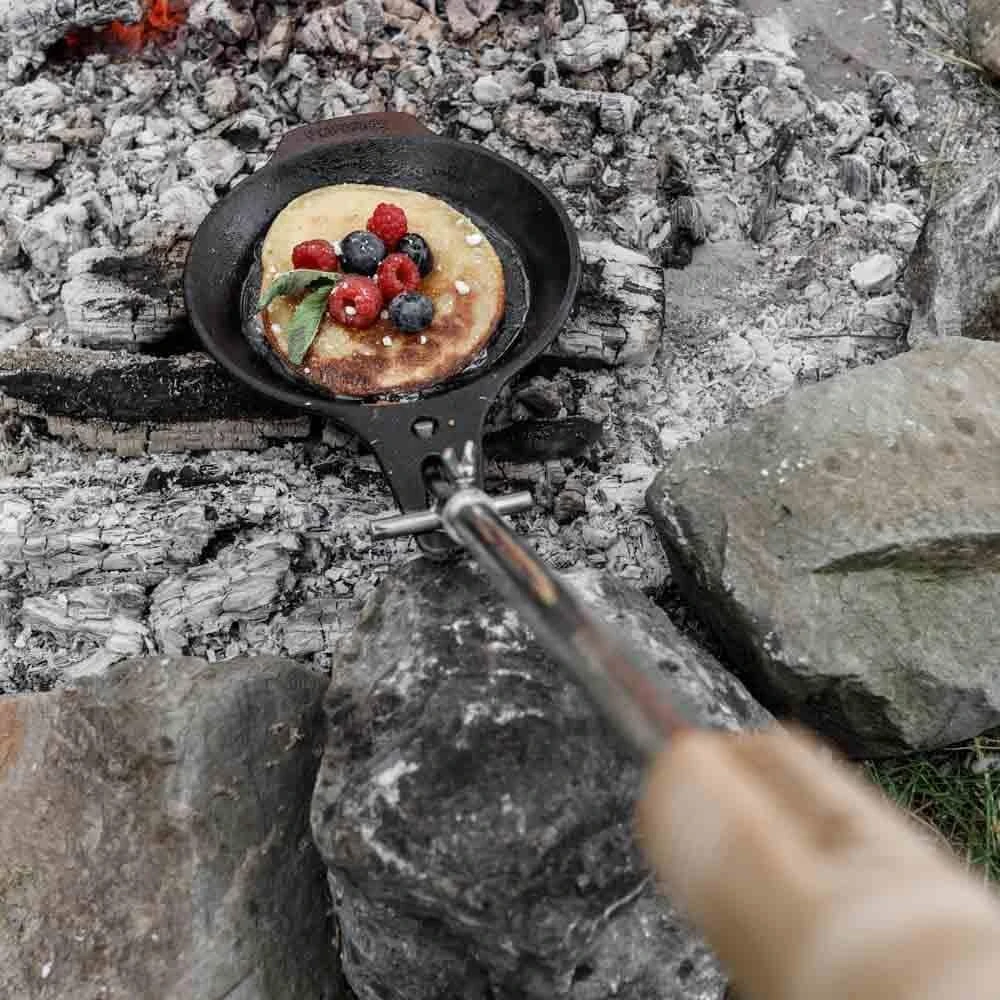 • die Pfanne fürs Lagerfeuer: dank des abnehmbaren Teleskopgriffs stellt man die gusseiserne Pfanne sicher ins Feuer