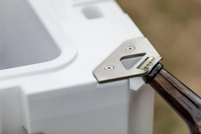 Die Petromax Kühlbox sicher verschließen und Getränkeflaschen bequem öffnen: Die Schlossplatte mit integriertem Flaschenöffner bietet dir bei deinen Draußen-Abenteuern eine praktische Doppelfunktion. Das Zubehörteil aus Edelstahl passt genau an die Position der unteren Verschlussplatte deiner Petromax Kühlbox und wird einfach gegen diese ausgetauscht. So verschließt du weiterhin deinen Proviant sicher vor fremdem Zugriff und kannst gleichzeitig Getränkeflaschen mit handelsüblichem Kronkorkenverschluss öffnen. Die Schlossplatte mit Flaschenöffner ist universell und daher für alle Petromax Kühlboxen geeignet.