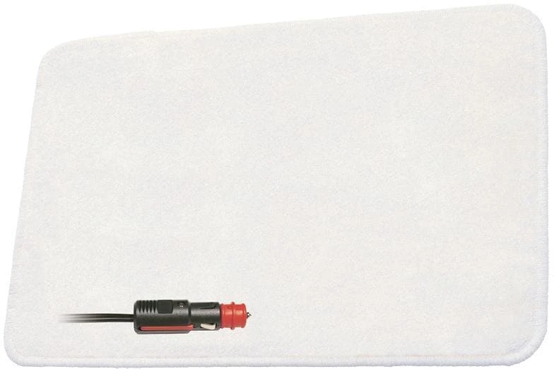 Rückseite. Die Badheizteppiche sind in drei Standardgrößen und mit 12 V- oder 230 V-Anschluss erhältlich. Das Heizgewebe kann mittels Reißverschluss entnommen werden, wodurch der Teppich sich bis zu 60 °C in der Waschmaschine reinigen lässt.