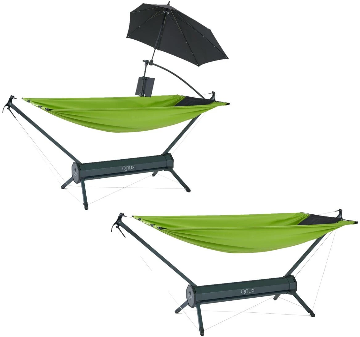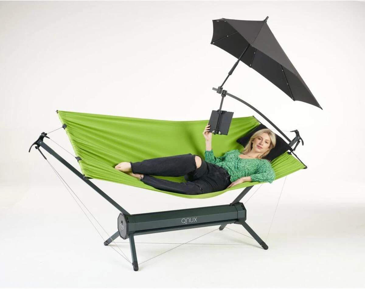 QNUX Travel Hängematte wahlweise mit Nackenpolster, Sonnenschirm oder Tablet Halterung