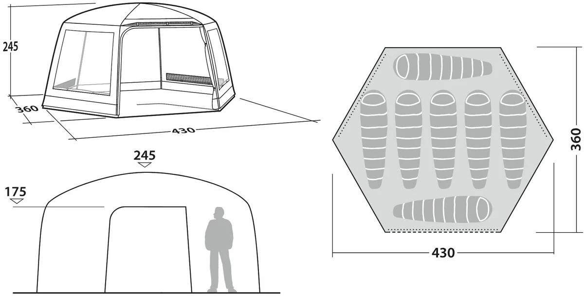 - Maße (B x T x H): 430 x 360 x 245 cm