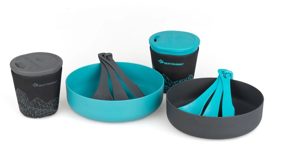 Ein leichtes und kompaktes Geschirrset für zwei Personen, bestehend aus unseren Delta Light Schüsseln, isolierten Bechern und Delta Besteck-Sets in pazifikblau und grau. Es lässt sich in seinem eigenen leichten Aufbewahrungsbeutel verstauen und passt bequem in unsere 2,7-Liter Alpha und Sigma Töpfe. Hergestellt aus BPA-freiem, glasfaserverstärktem Polypropylen, sind unsere Delta Light Schalen, Isolierbecher und Besteck-Sets langlebig, leicht, pflegeleicht, mikrowellen- und spülmaschinenfest.