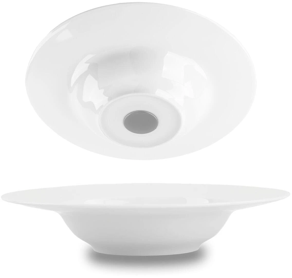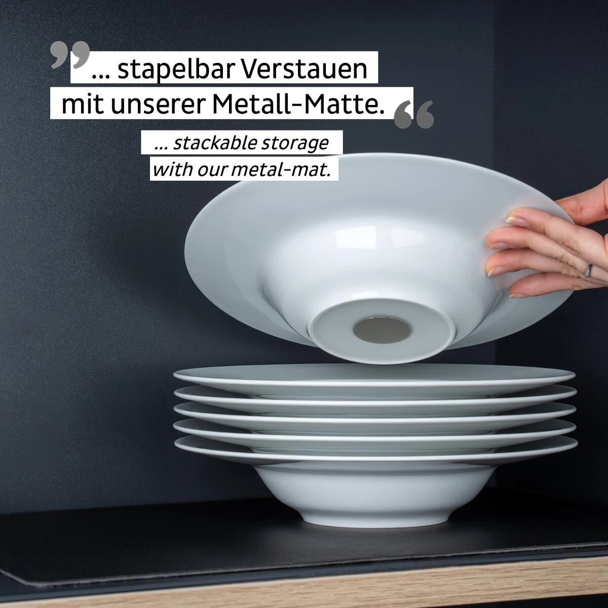 Die Gourmet Magnet-Teller aus hochwertigem Porzellan sind platzsparend verstaubar und stapelabr. Dank eingebauten Magnet im Tellerboden außerdem geräuscharm und verfügen über einen stabilen Stand.