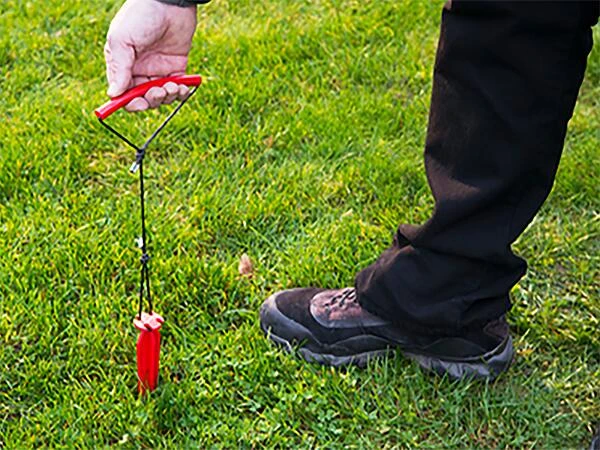 Mit dem PegPuller entfernt man schnell und rückenschonend bombenfest sitzende SwissPiranha Heringe. Einfach die Schlinge unter den Kopf des Herings legen und nach oben ziehen – so einfach ist das! Die dünne Schnur aus hochreißfestem Dyneema ist mit einem bequemen Griff ausgerüstet. Federleicht und mini im Packmaß findet der SwissPiranha PegPuller in jeder Hosentasche Platz. Na dann: Full Pull!