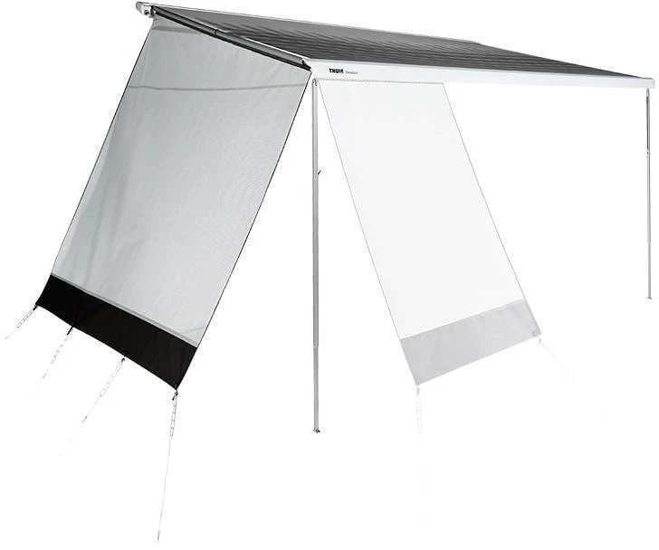 Die ideale Ergänzung zu Ihrer Markise. Die Vorderwand wird einfach in das Frontprofil der Markise eingeschoben und abgespannt.