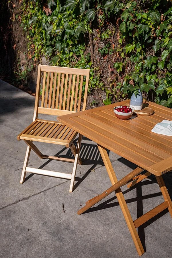 Der klappbare Gartentisch TERRAZZO FITT ist die optimale Ergänzung für Garten, Terrasse und Veranda. Selbst auf kleinen Balkonen erschaffen Sie mit diesem Tisch eine gemütliche Outdoor-Ecke. Er besteht aus FSC-zertifiziertem Tauri Holz. Das massive Holz begeistert mit einer hohen Witterungsbeständigkeit und ist somit optimal für den Außenbereich geeignet. Der Tisch kann zur platzsparenden Aufbewahrung zusammengeklappt werden. Dies ist besonders für die Wintermonate hilfreich.