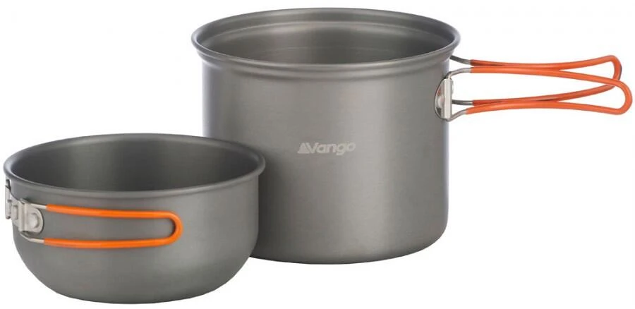 Das Vango Hard Anodised Cook Kit besteht aus 2 Töpfen mit Deckel-Becher-Kombination. Es ist ideal für Reisende, die einen Zwischenstopp für eine schnelle Mahlzeit einlegen wollen, ohne sich Gedanken darüber zu machen, dass sie ihre Töpfe und Pfannen schrubben müssen. Es ist leicht, antihaftbeschichtet, robust und langlebig und hält viele Jahre. Außerdem ist es dank der praktischen Tragetasche extrem tragbar.