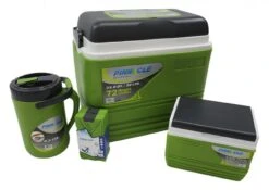 Inhalt: 5-teiliges Kühlbox Set – Beinhaltet 32L Kühlbox, 4.5L Kühlbox, 2.5L Flasche und 2 Kühlblöcke