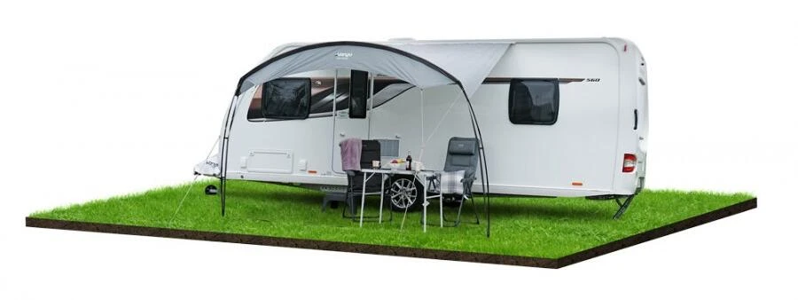 Die Überdachung Sun ist so konzipiert, dass sie neben dem Wohnwagen, Reisemobil oder Wohnmobil einen geschützten überdachten Außenbereich bietet. Sie kann einfach mit dem vormontierten Kador-Streifen befestigt werden und sorgt so für einen sauberen Sitz an der Seite Ihres Fahrzeugs.