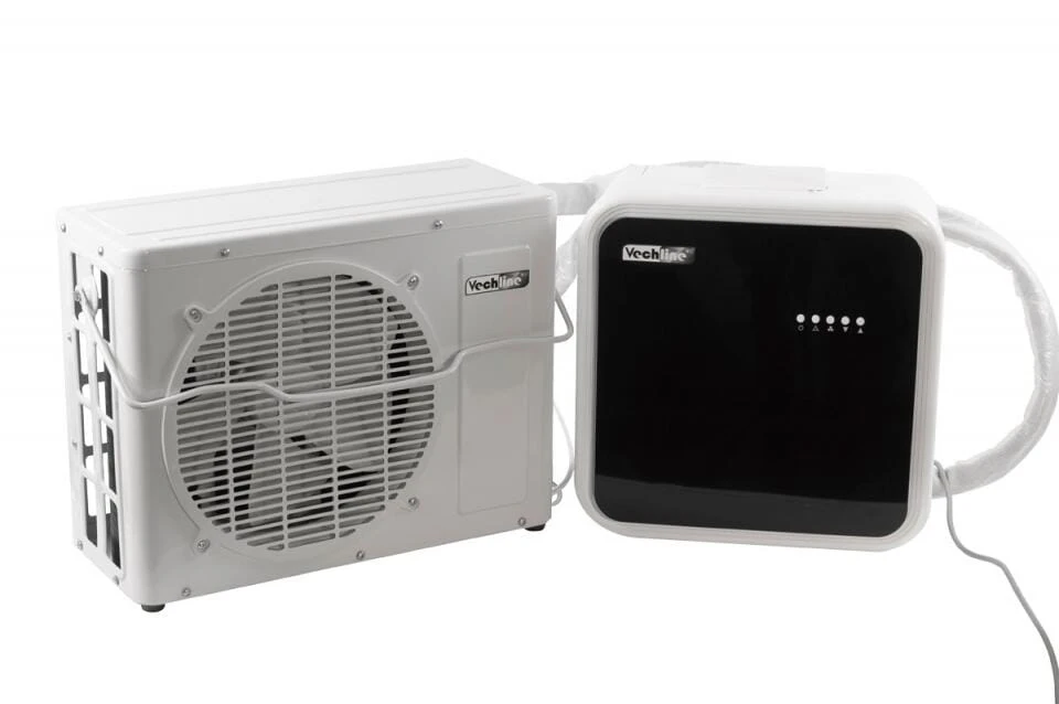 Dadurch, dass die Split-Kilmaanlage unter 1.000 W benötigt, kann sie auf allen Campingplätzen betrieben werden – auch in Italien. Die Klimaanlage hat drei Lüftungsstufen und einen niedrigen Geräuschpegel.