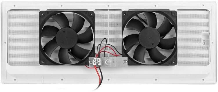 Vorinstalliertes Set bestehend aus: Lüftungsgitter, 2x Kühlschrankventilator + Thermostatschalter (42 C voreingestellt, Lüfter starten automatisch beim Erreichen dieser Temperatur). Optimiert die Effizienz des Kühlsystems unter allen Umgebungsbedingungen.