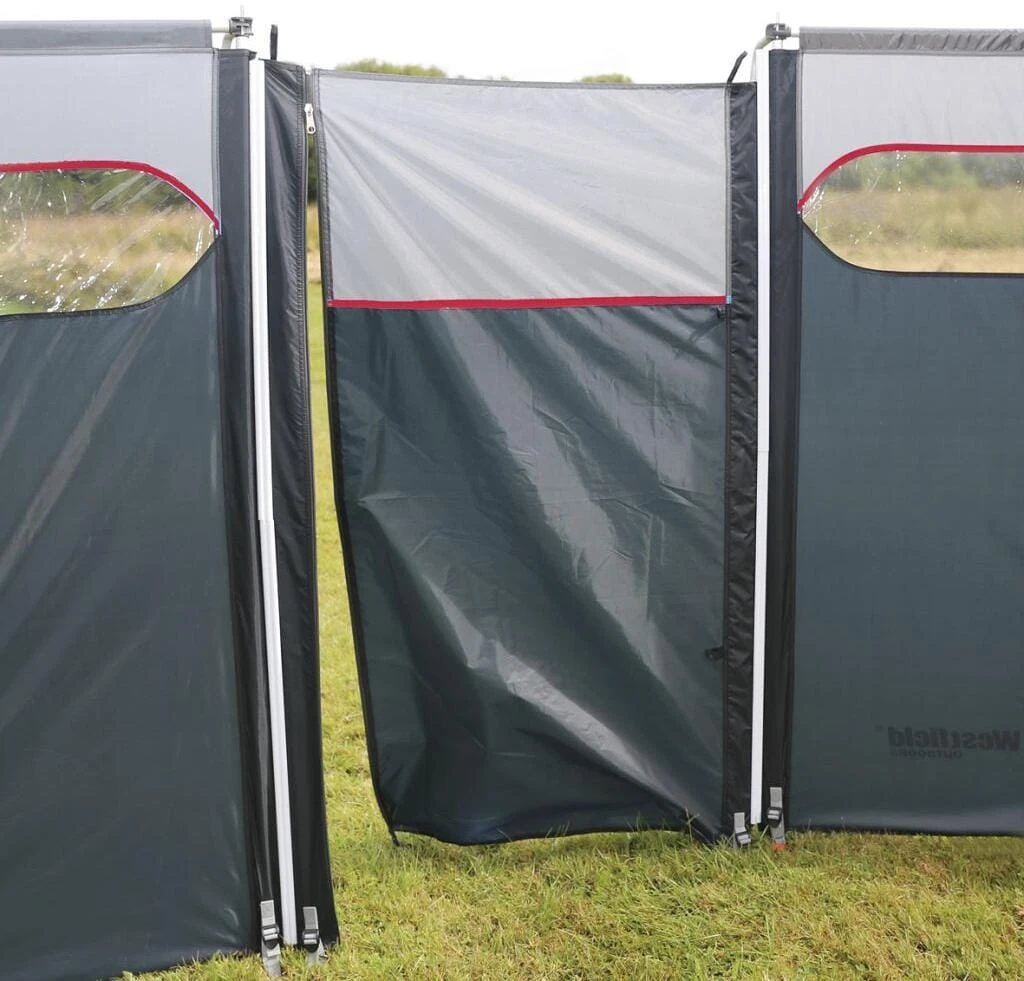 Das Türelement ist eine bequeme Ergänzung zum Windschutz Windshield Pro von Westfield. Verlassen Sie Ihre Privatsphäre ganz entspannt über die mit Reißverschlüssen angebrachte Tür und schützen Sie sich im geschlossenen Zustand vor unerwünschten Blicken.