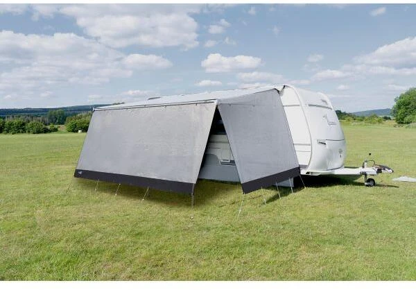 Schutz gegen Sonne, wasserabweisendes Gewebe und von Außen nicht einsehbar? Das BLOXX View (für volleingezogene Modelle) ist der perfekte Allrounder für jedes Wetter. Die Vorderwand wird einfach in die Kederschiene der Markise eingezogen, die Seitenwand wird auf die seitliche Dachstange geschoben und mit der Markise verklettet. Beide werden mit Heringen am Boden verspannt. Das System zeichnet sich durch geringes Gewicht und kleines Packmaß aus.