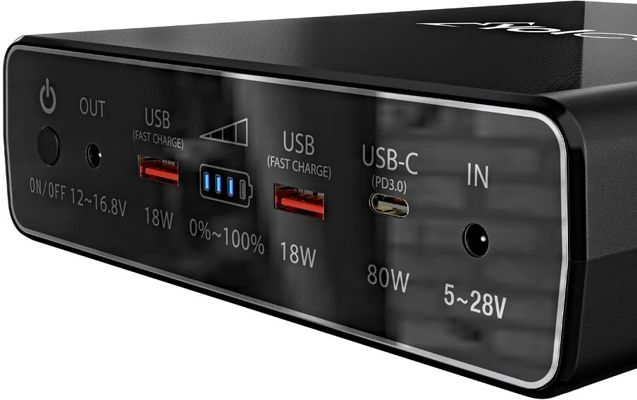 - USB-C-Ausgangsport (PD3.0): 5–20V/4,0 A (max. 80 W)