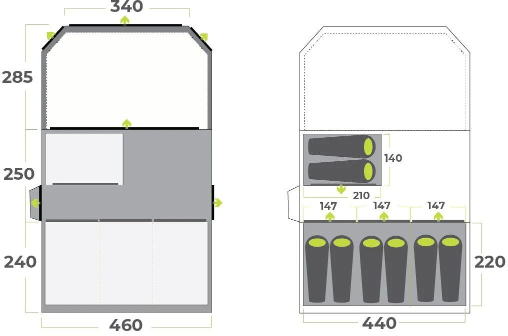 - Strapazierfähige Gurtbandführungen sorgen dafür, dass das Vorzelt beim Aufstellen rechtwinklig ist